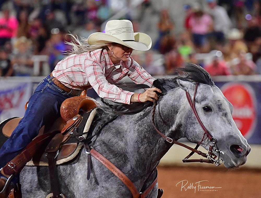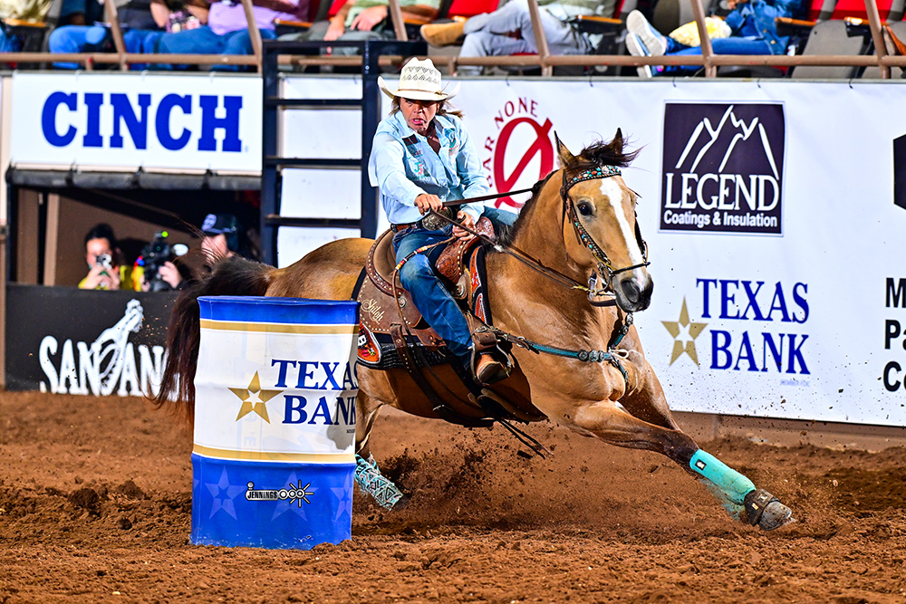 Shelley Morgan has to wait out the final two preliminary performances next Wednesday and Thursday to see if she will advance to the short round of the San Angelo Stock Show and Rodeo. She sits third in the two-run aggregate aboard Bee, a 9-year-old buckskin gelding. (PHOTO BY JENNINGS RODEO PHOTOGRAPHY) SAN ANGELO, Texas – Shelley Morgan may be a competitor, but there are bigger things in her life. Faith and family are at the top of that list, but not far behind are the horses she cares for. It’s why she’s done so well as a barrel racer. She’s had some good ones in her career, which includes five qualifications to the National Finals Rodeo, where she also won the 2022 average title. She rode Short Go during her first trip to Las Vegas in 2009, then it was Kiss’ turn. The 12-year-old sorrel mare was voted as one of the top barrel racing horses in the game in 2020, the same year the mare was named the WPRA’s Horse with the Most Heart. In her last venture to Nevada two Decembers ago, Morgan also utilized another percolator in Bee, a 9-year-old buckskin mare. On Saturday afternoon, Morgan and Bee put together a 14.24-second run to move into the money and improve their chance at returning to the championship round next Friday. “She just came off a two-week break, so she should be feeling really good,” said Morgan of Eustace, Texas. “She ran good (Saturday).” During Saturday night’s eighth performance, all-around cowboy Wacey Schalla did some magic. He scored 87.5 points on United Pro Rodeo’s Whisky Trip to move into third place on the bareback riding leaderboard. About two hours later, he rode Rafter H Rodeo’s Time Machine for 86 points to move into a tie for fourth place in bull riding. Schalla finished last season second in the all-around race. He was fifth in the bareback riding world standings and fourth in bull riding with a combined income of $741,428. Already this season, he has earned almost $100,000 riding bucking horses and $30,000 riding bulls. He’s joining Morgan as one of the contestants that is making a big move in San Angelo. Combined with a 16.13-second run in the opening round two weeks ago, Morgan moved into third place in the two-run aggregate. She’d like to stay there by the time next weekend rolls around, because only the top 12 cumulative scores advance to the short round. She likes her chances inside CRC Roofers Coliseum. “I think she’s quite fast, but she’s really quick,” Morgan said. “I think these small setups suit her because she’s so quick. She’s also pretty honest most of the time. All I could do is just push her up in times, and she accelerates quick, which is what I think helps her in setups like this.” The times between Rounds 1 and 2 vary considerably, because the opener took place in Spur Arena. LaTricia Duke posted the fastest time that Sunday, stopping the clock in 15.69 seconds. Having a well-rounded horse who can handle those differences is beneficial. “These horses see all different things out here, so she should be pretty accustomed to changing from one thing to the next,” Morgan said. “She’s fast enough to be good in any set up. I just think when you put her in a small building that her quickness pays off sometimes.” Is Bee the kind of horse that can get Morgan back in Sin City this December? She likes the mare a lot, but with Kiss on the sidelines for an undetermined amount of time, she’s not sure it’s in Bee’s best interest. “We came out strong this season, then we got on the struggle bus a little bit,” she said. “We’ve said we’re going to make a plan after San Angelo, but I don’t know what I’m going to do yet. I have several young horses, and the future is uncertain where Kiss is concerned. I do have Bee, which is really nice, but barrel racing has gotten to where you really need more than one horse out there.” The younger horses just need more time, so she’s also considering focusing her attention to that. As a horsewoman, the overall goal is going to be toward the betterment of her equine partners. “Whether we hit the road hard and take them with us or we hang back and try to get them really good at the barrel races and all the smaller rodeos is still to be determined,” Morgan said. “We just want to do right by the horses.” San Angelo Stock Show and Rodeo April 3-18 Bareback riding leaders: 1. Leighton Berry, 92 points on Korkow Rodeo’s Tator Tot; 2. Cole Reiner, 88.5; 3. Wacey Schalla, 87.5; 4. Wyatt Warneke, 87; 5. (tie) Jayco Roper and Cooper Cooke, 86; 7. Kade Berry, 85.5; 8. (tie) Taylor Broussard and Cole Hollen, 84.5; 10. (tie) Colton Clemens, Lane McGehee, Cooper Filipek and Ben Kramer, 84. Steer wrestling: Third round leaders: 1. J.D. Struxness, 4.3 seconds; 2. Tory Johnson, 4.4; 3. (tie) Dalton Massey, Logan Mullin, Laramie Warren and Jacob Daniell, 4.6; 7. (tie) Evan Spady, Cimarron Thompson and Tristan Martin, 4.7. Average leaders: 1. (tie) Cimarron Thompson and Chase Crane, 15.3 seconds on three runs; 3. (tie) Grant Peterson, 15.7; 4. (tie) Tony Aska and Coy Johnson, 16.4; 6. Trace Harris, 16.5; 7. J.D. Struxness, 17.0; 8. Ty Allred, 17.5; 9. Tad Williams, 17.7; 10. Logan Mullin, 18.4; 11. Cade Goodman, 5.0; 11. Cole Pugh, 19.8; 12. Traver Johnson, 20.7. Tie-down roping: Third round leaders: 1. Cory Solomon, 8.5 seconds; 2. (tie) Brodey Clemons and Cash Enderli, 8.7; 4. Richard Newton, 9.0; 5. (tie) Trevor Hale, Tom Crouse and Quade Hiatt, 9.1; 8. (tie) Beau Cooper and Sam Lewis, 9.2. Average leaders: 1. Beau Cooper, 26.2 seconds on three runs; 2. Joel Harris, 27.3; 3. Sam Lewis, 27.5; 4. Brodie Mattson, 27.7; 5. Cole Clemons, 28.2; 6. Cash Enderli and Colton Suther, 28.8; Continue Reading »