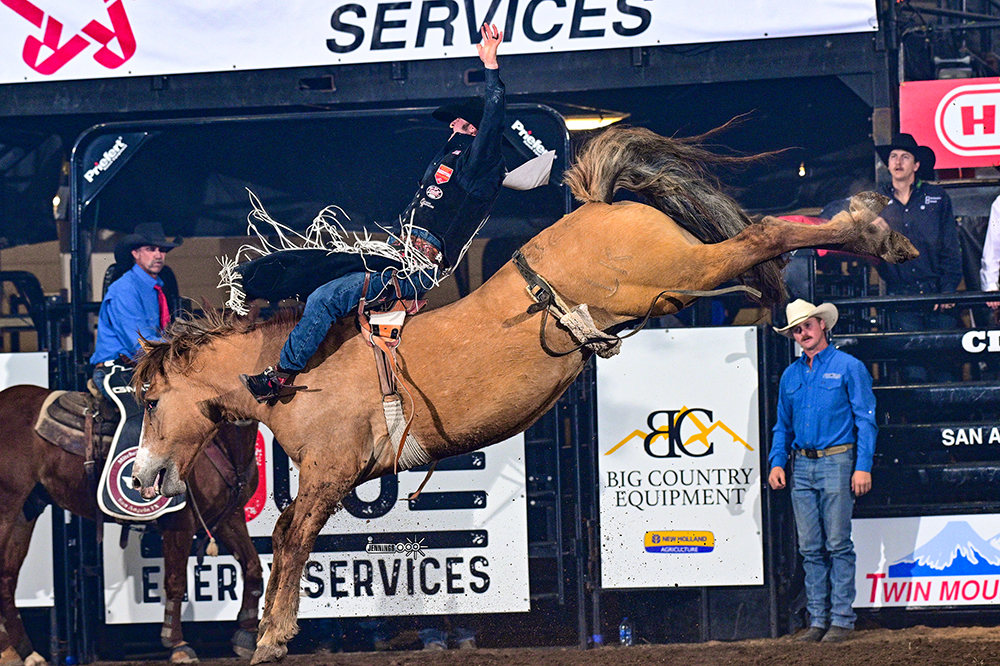 Chase Brooks rides Pete Carr Pro Rodeo’s High Dive for 86.5 points to finish the opening round in fourth place. He’s just a point off the lead, and he will be one of 11 saddle bronc riders competing for the championship Friday night. (PHOTO BY JENNINGS RODEO PHOTOGRAPHY) SAN ANGELO, Texas – Every sports fan loves it when games come down to the wire to decide the winners. Competitors love it, too. Saddle bronc riding at the San Angelo Stock Show and Rodeo is going to be decided during a showdown at Friday night’s championship round. Just three and a half points separates the 11 men who will compete for the San Angelo title. “At a lot of rodeos, it’s just gambling, and there are a lot of factors,” said Chase Brooks, who rodeo Pete Carr Pro Rodeo’s High Dive for 86.5 points during Thursday’s 10th performance; he finished fourth in the first round and secured his spot in the finale. “First, we had to get the right horse, and then we both have got to have the right day. So, you just show up do what we do all year, and I figure it’s going to lay the way God has it planned.” It seems simple. It isn’t. Brooks qualified for the National Finals Rodeo six straight years beginning in 2018. Injuries have sidelined him enough the last two years that he stayed home in December. His faith and a young family have been his saving grace when he wasn’t able to ride broncs. “A couple years of injuries slowed me down, but every time I was hurt, I got to spend more time at home with the girls, and I was fortunate for that,” said Brooks, 31, originally from Deer Lodge, Montana, but now living in Brock, Texas, with his wife, Cara, and their two daughters, C.J. and Cecile. “There’s always a reason He puts us somewhere. I think Him giving me a break like that was maybe the best thing that could ever happen to me.” It shows in the arena. Thursday was the second trip for High Dive inside CRC Roofers Coliseum. Canadian Kolby Wanchuk was 85.5 points on the powerful bay on the opening weekend. “I’d been on that horse a few years ago when he was still kind of young, still kind of wild,” said Brooks, who entered this week’s competition sixth in the world standings. “He really didn’t know what he was doing. I saw that Kolby had him earlier, and the horse was really good that day. I figured he’d matured and figured it out. He showed up, and I was happy I matched it.” Four-time world champion Zeke Thurston won the opening round with an 87.5-point ride on Carr’s Uptuck. Brooks is just a point behind, and his fourth-place check was worth $2,610. The big money will come Championship Friday. “The energy’s high in that building,” he said of the coliseum. “It’s a little bit smaller than the big, indoor rodeos like Houston, so the crowd really amplifies a bit more than other places. It fills up, and they have all the lights and the pyro. It’s a really cool setting, and it fires a guy up.” San Angelo Stock Show and Rodeo April 3-18 Bareback riding leaders: 1. Leighton Berry, 92 points on Korkow Rodeo’s Tator Tot, $7,128; 2. Cole Reiner, 88.5, $5,465; 3. Luke Thrash, 88, $4,039; 4. Wacey Schalla, 87.5, $2,614; 5. Wyatt Warneke, 87. $1.663; 6. Kade Sonnier, 86.5, $1,188; 7. (tie) Jayco Roper, Cooper Cooke, Bradlee Miller and Clayton Biglow, 86, $416 each; 11. (tie) Rocker Steiner and Kade Berry, 85.5. Steer wrestling: Third round leaders: 1. J.D. Struxness, 4.3 seconds, $4,794; 2. Tory Johnson, 4.4, $4,169; 3. (tie) Dalton Massey, Logan Mullin, Laramie Warren and Jacob Daniell, 4.6, $2,605 each; 7. (tie) Tyler Waguespack, Evan Spady, Cimarron Thompson and Tristan Martin, 4.7, $365 each. Average leaders: 1. Cody Devers, 13.4 seconds on three runs; 2. Jesse Brown, 14.1; 3. Colin Fox, 14.2; 4. (tie) Cimarron Thompson and Chase Crane, 15.3; 6. Tyler Waguespack, 13.4; 7. Colt Honey, 15.6; 8. Grant Peterson, 15.7; 9. (tie) Tony Aska and Coy Johnson, 16.4; 11. Trace Harris, 16.5; 12. J.D. Struxness, 17.0. Tie-down roping: Third round leaders: 1. Cory Solomon, 8.5 seconds, $4,828; 2. (tie) Brodey Clemons, Pax Vogel and Cash Enderli, 8.7, $3,569 each; 5. Richard Newton, 9.0, $2,309; 6. (tie) Trevor Hale, Tom Crouse and Quade Hiatt, 9.1, $1,050 each. Average leaders: 1. Beau Cooper, 26.2 seconds on three runs; 2. Joel Harris, 27.3; 3. Sam Lewis, 27.5; 4. Brodie Mattson, 27.7; 5. Cole Clemons, 28.2; 6. Dylan Hancock, 28.6; 7. (tie) Cash Enderli and Colton Suther, 28.8; 9. Brodey Clemons, 28.9; 10. Sterling Smith, 29.1; 11. Cory Solomon, 29.3; 12. Pax Vogel, 29.4. Saddle bronc riding leaders: 1. Zeke Thurston, 87.5 points on Pete Carr Pro Rodeo’s Uptuck, $7,118; 2. (tie) Mitchie Story and Damian Brennan, 87, $4,745 each; 4. Chase Brooks, 86.5, $2,610; 5. Lefty Holman, 86, $1,661; 6. (tie) Kolby Wanchuk and Joe Macqueen, 85.5, $1,068 each; 8. (tie) Kade Bruno and Blake Steuck, 85, $356 each; 10. (tie) Ryder Sanford and Tyrel Roberts, 84; 12. (tie) Darcy Radel, Wyatt Casper, Kole Ashbacher and Rusty Wright, 83.5.The final round will only feature the top 11. The four men in 12th place will not advance. Breakaway roping: Second round leaders: 1. Megan Powell, 2.0 seconds, $4,300; 2. (tie) Sawyer Gilbert, Kirby Rawlinson, Hailey Hall, Tibba Smith, Millie Greenwood and Bradi Good, 2.1, $2,078 each; 8. Kinlie Brennise, 2.2, $967; 9. (tie) Amy Ohrt, Jenna Caldarola and Danielle Lowman, 2.3, $752 each; 12. (tie) Cheyanne McCartney and Delani Beatty, 2.6, $484 each; 14. (tie) Zoie Bedke and Maddy Jacobs, 2.7. $269. Average leaders: 1. Danielle Lowman, 4.2 seconds on two runs; 2. Delani Beatty, 4.6; 3. (tie) Cheyanne McCartney and Cadee Williams, 4.8; 5. Amy Ohrt, 5.0; 6. Tibba Smith, 5.1; 7. Jenna Caldarola, 5.2; 8. (tie) Kirby Rawlinson and Adisyn Henderson, 5.3; 10. Continue Reading »