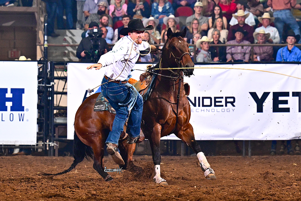 Tie-down roper Joel Harris dismounts his horse during Friday’s 9.4-second run to take the third-round and aggregate lead at his hometown event, the San Angelo Stock Show and Rodeo. (PHOTO BY JENNINGS RODEO PHOTOGRAPHY) SAN ANGELO, Texas – Joel Harris is a little biased toward his hometown event, the San Angelo Stock Show and Rodeo. “It’s the best rodeo in the world in my opinion,” said Harris, 23, a two-time National Finals Rodeo tie-down roping qualifier from this city of 100,000 folks. “It definitely has the best rodeo fan. I’ve witnessed it firsthand, rodeo after rodeo. I know what the fans are about. “It’s not just me that says that San Angelo has the best fans in the world; a lot of cowboys think that. For it to be my hometown is pretty special. He brought the audience to its feet during Friday’s opening performance at the CRC Roofers Coliseum, taking the third-round lead with a 9.4-second run. He knows the chances of placing in the round are slim but has roped and tied three calves in 27.3 seconds. The cowboys with the top 12 three-run cumulative scores will advance to Championship Friday, where winners will be crowned April 17. He stopped the clock in 8.3 seconds the opening round, which took place this past Monday at Spur Arena. All tie-down ropers, team ropers and steer wrestlers competed in two go-rounds at the first of the week, and the top two-run cumulative times advanced to the progressive rounds, which take place over the 10 preliminary performances at the coliseum. “I think the new format is great,” said Harris, who placed in the opening round, pocketing $2,939 in San Angelo cash already. “It makes it a lot easier for the cowboys to be able to get around to other rodeo and gives everyone an opportunity to rope in a (performance) at San Angelo. “You have to earn it (by advancing), but it’s up to the ropers to get here. Hopefully once you get here, you perform well.” He has done that throughout his young career, especially the last two seasons. Harris, who is 18th in the world standings, finished 2025 at the No. 4 tie-down roper in the world standings with nearly $335,000 in earnings. Of that, $193,931 came during the NFR. He won $149,095 at the 2024 finale; his two combined trips to rodeo’s Super Bowl were worth more than $340,000. He averaged $17,151 per round he has roped inside the storied Thomas & Mack Center. Maybe his years of being inside the tiny confines of San Angelo’s coliseum have helped. What has spurred him on this week has been Django, a powerful bay he owns with his brother, Ty, a seven-time NFR qualifier. “We bought him a year and a half ago, and he’s just such a good horse,” Joel Harris said. “He gives me so many good opportunities to win. Anytime I’m having questions about what horse to ride, I know I can get on him, and he’s going to give me a really good chance every time.” He was certainly glad to have Django in a building he knows so well. “It was great,” he said. “I would have liked to have performed better, but there’s a good chance I’ll get to rope again the short round. That’s just another run I get to make in front of the home crowd.” San Angelo Stock Show and Rodeo April 3-18 Bareback riding leaders: 1. Taylor Broussard, 84.5 points on Macza Pro Rodeo’s Lonestar; 2. Ethan Mazurenko, 82; 3. Carson Hildre, 80; 4. Jade Taton, 79; 5. Clay Stone, 74; no other qualified rides. Steer wrestling: First round: 1. Cimarron Thompson, 3.8 seconds, $4,794; 2. Colin Fox, 4.0, $4,169; 3. (tie) Cody Devers and Jude Leonards, 4.1, $3,231 each; 5. (tie) Riley Duvall, Don Payne and Seth Peterson, 4.2, $1,667 each; 8. Cade Goodman, 4.3, $417. Second round: 1. Chase Crane, 3.6 seconds, $4,794; 2. Colt Honey, 3.8, $4,169; 3. (tie) Jacob Daniell and Ty Erickson, 3.9, $3,231 each; 5. (tie) Quentin Branden and Peter Haas, 4.0, $1,980 each; 7. (tie) Jesse Brown and Kall Mayfield, 4.1, $730 each. Third round leaders: 1. Tristan Martin, 4.7 seconds; 2. Gavin Soileau, 5.2; 3. Tyke Kipp, 6.3; no other qualified runs. Average leaders: 1. Tyke Kipp, 21.0 seconds on three runs; 2. Colin Fox, 8.2 seconds on two runs; 3. Cody Devers, 8.4; 4. Cash Robb, 8.7; 5. Ty Allred, 9.0; 6. Tristan Martin, 9.1; 7. (tie) Grant Peterson and Rowdy Parrott, 9.2; 9. Jesse Brown, 9.3; 10. Nick Guy, 9.4; 11. Paul Melvin, 9.5; 12. Gavin Soileau, 9.6. Team roping: First round: 1. Stefan Ramone/Kelby Frizzell, 3.9 seconds, $3,842 each; 2. J.C. Yeahquo/Logan Moore, 4.3, $3,341; 3. Jayse Tettenhorst/Belden Cox, 4.5, $2,840; 4. (tie) Bridger Ketcham/Kaden Prince and Nelson Wyatt/Jonathan Torres, 4.6, $2,088 each; 6. (tie) Lyvan Gonzalez/Daryan Gonzalez and Ketch Kelton/Paden Bray, 4.8, $1,086 each; 8. Andrew Ward/Jake Long, 4.9, $334. Second round: 1. Stefan Ramone/Kelby Frizzell, 3.9 seconds, $3,842 each; 2. J.C. Yeahquo/Logan Moore, 4.3, $3,341; 3. Jayse Tettenhorst/Belden Cox, 4.5, $2,840; 4. (tie) Bridger Ketcham/Kaden Prince and Nelson Wyatt/Jonathan Torres, 4.6, $2,088 each; 6. (tie) Lyvan Gonzalez/Daryan Gonzalez and Ketch Kelton/Paden Bray, 4.8, $1,086 each; 8. Andrew Ward/Jake Long, 4.9, $334. Second round: 1. Conley Kleinhans/Kyler Kanady, 3.9 seconds, $3,842 each; 2. (tie) Kavis Drake/Denim Ross, Dustin Egusquiza/JC Flake, Tee McLeod/Trey Yates and Nelson Wyatt/Jonathan Torres, 4.1, $2,589 each; 6. (tie) Jaxon Hill/Jessen James and Kolton Schmidt/Chase Tryan, 4.2, $1,086 each; 8. (tie) Kaleb Driggers/Junior Nogueira and Clint Summers/Jade Corkill, 4.3, $167 each. Third round leaders: 1. Tanner Tomlinson/Coleby Payne, 3.7 seconds; 2. Riley Kittle/Cole Curry, 5.4; 3. Seth Hall/Nicky Northcott, 9.4; 4. Billy Bob Brown/Blaine Vick, 9.9; 5. Derrick Begay/Colter Todd, 18.4; no other qualified times. Average leaders: 1. Riley Kittle/Cole Curry, 20.8 seconds on three runs; 2. Seth Hall/Nicky Northcott, 24.7; 3. Nelson Wyatt/Jonathan Torres, 8.7 seconds on two runs; 4. Ketch Kelton/Paden Bray, 9.2; 5. Stefan Ramone/Kelby Frizzell, 9.3; 6